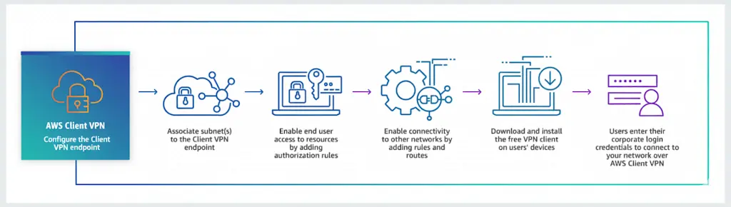 It is a fully managed remote access VPN solution that allows your distant employees to safely access resources on AWS as well as your on-premises network. It automatically adjusts up or down dependent on demand because it is fully elastic. Your users can access your applications in the same way before, during, and after the transfer to AWS.