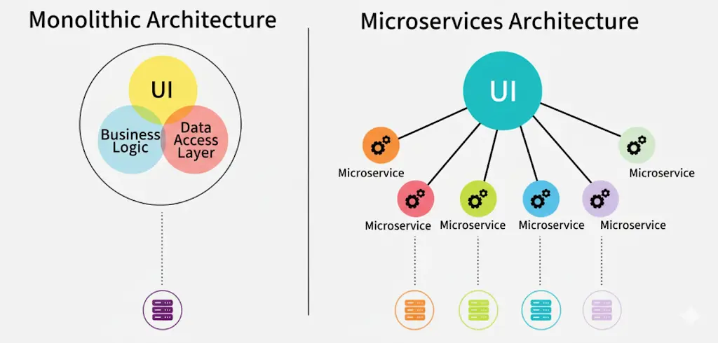In the past, applications were built using a monolithic architecture, where everything was interconnected and bundled into one big codebase. This made updates risky for example, if you wanted to change just the payment module in an e-commerce app, you had to redeploy the entire application. A small bug could crash the whole system.