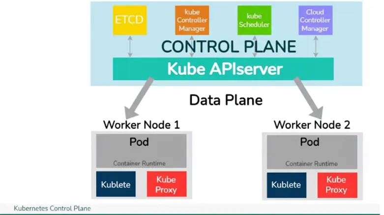The Kubernetes Control Plane, often called the “Master” or “Control Node,” is a set of components that collectively manage the state of a Kubernetes cluster. It acts as the brain of the cluster, making worldwide decisions about the cluster (for example, scheduling), as well as detecting and responding to cluster events (like starting a new pod while a deployment’s replicas field is unsatisfied)