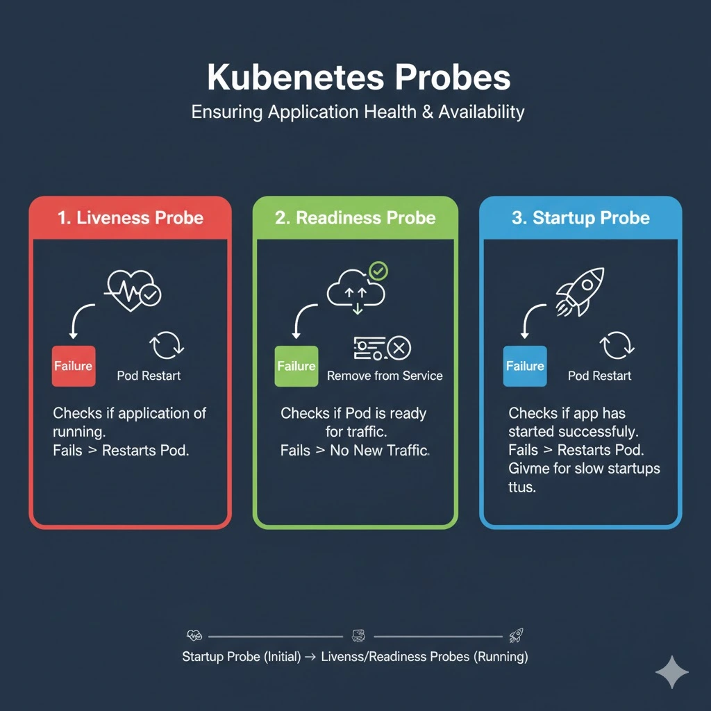 Together, these probes create a self-healing system where applications recover automatically, maintain consistent performance, and deliver seamless user experiences — making them an integral part of every production-grade Kubernetes deployment.
