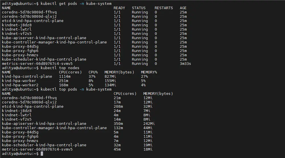 kubectl top pods -n kube-system If kubectl top shows CPU/memory, metrics-server is working.
