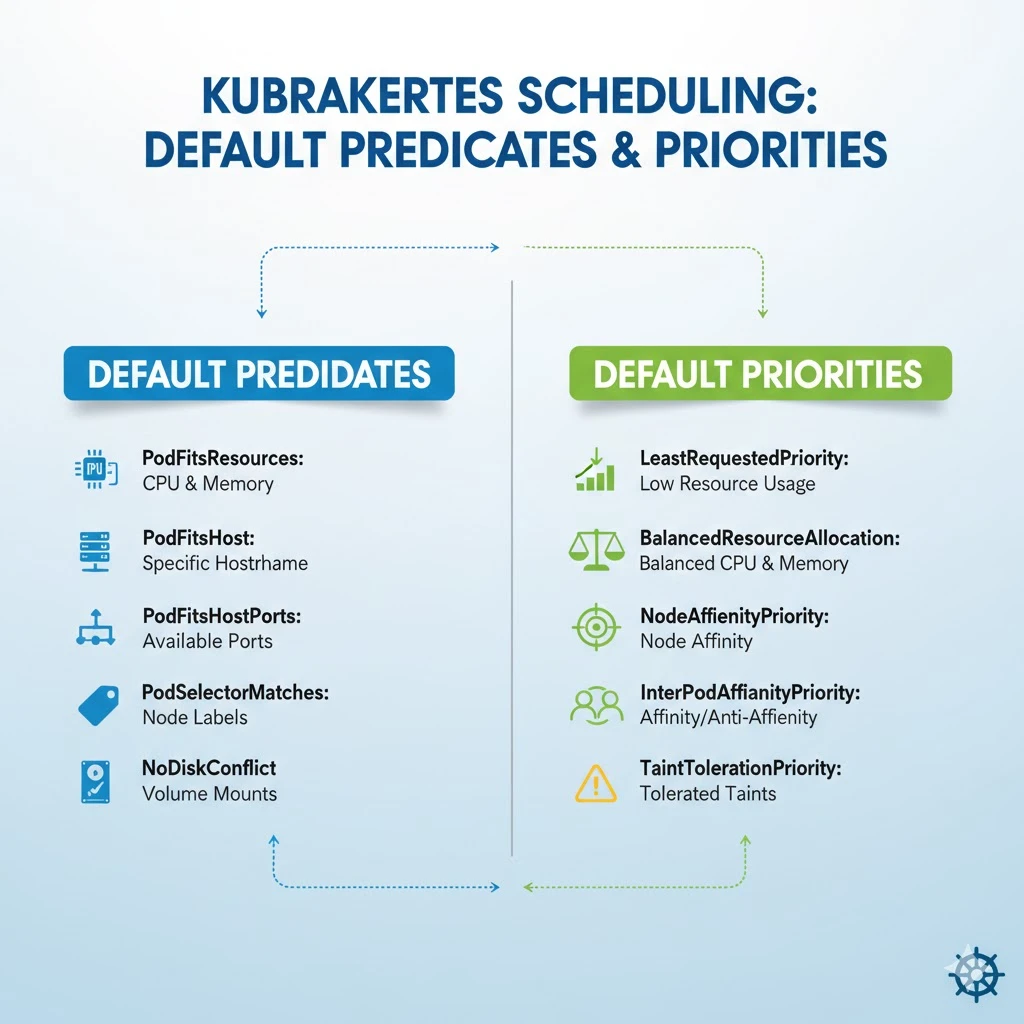 Kubernetes includes a default set of predicates and priorities to cover common scheduling scenarios: