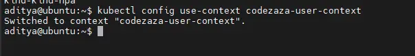 Switched to context "codezaza-user-context".Verify that the get pods command now runs successfully: