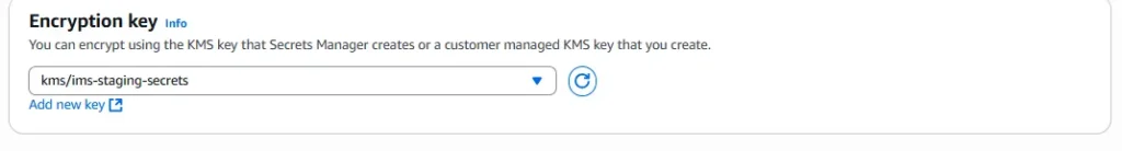 4.Encryption key: select kms/ims-staging-secrets.