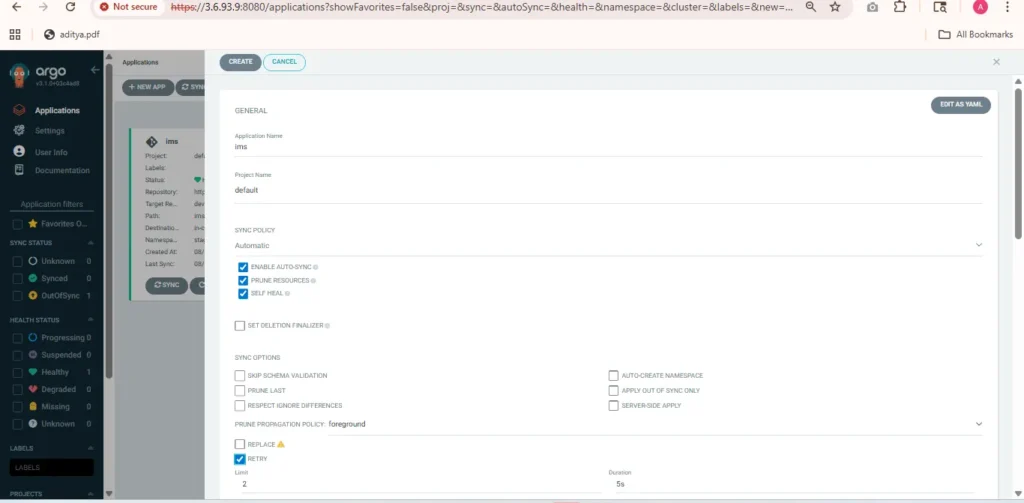 helm install ims-stsging-chart ims-staging-chart -n stagingStep 8:- Deploy on argocd and verify