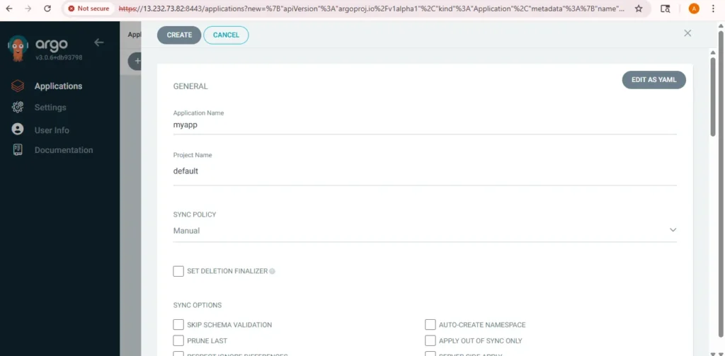 • Application Name: e.g., my-appProject: defaultSync Policy: Manual or Automatic (choose as needed)
