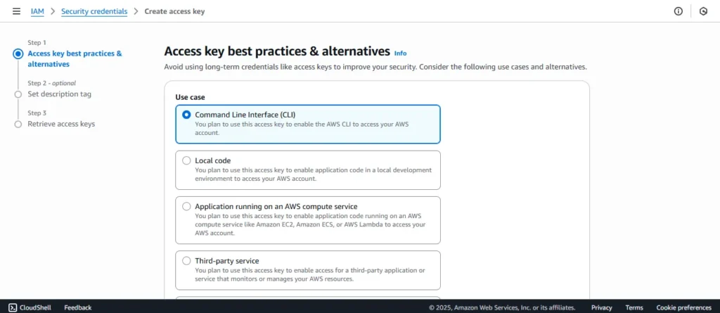 3.choose your use case give description and gain your access keys