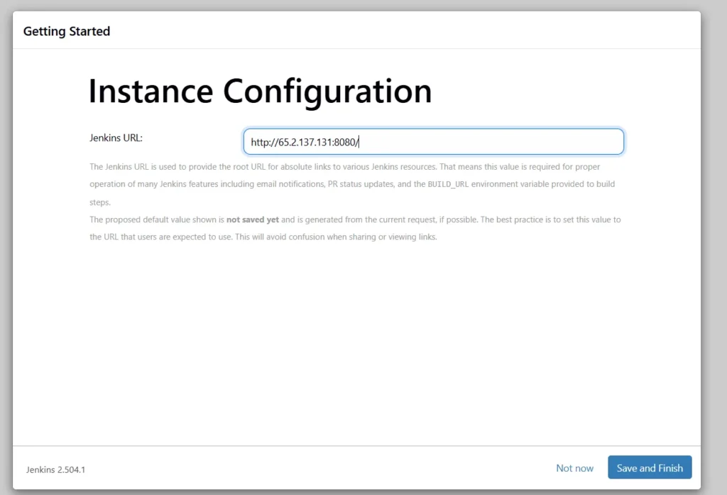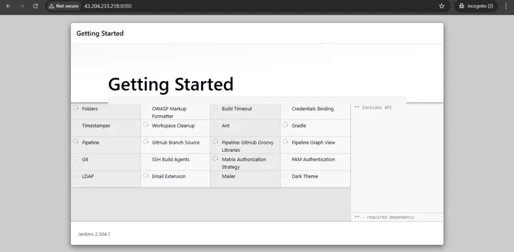 Jenkins Getting Started Screen.