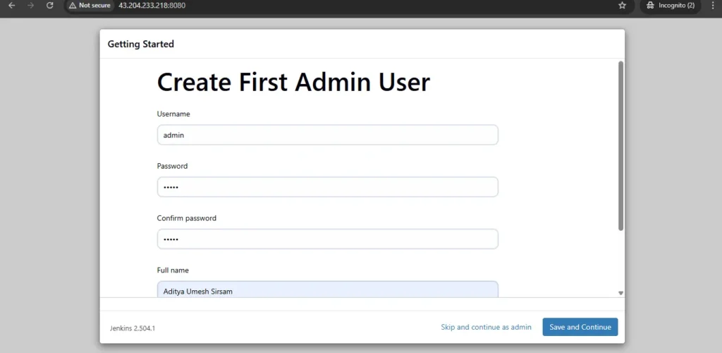 Once Jenkins is installed, now grab your Public IP Address and paste it to your browser like below.