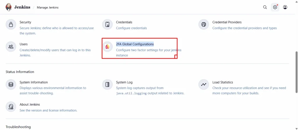 Note: Jenkins doesn’t natively include 2FA functionality for all authentication flows out of the box.