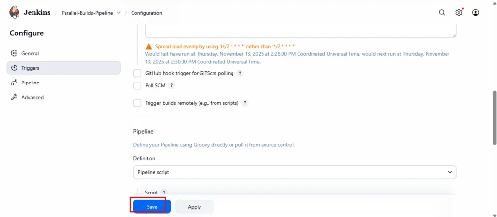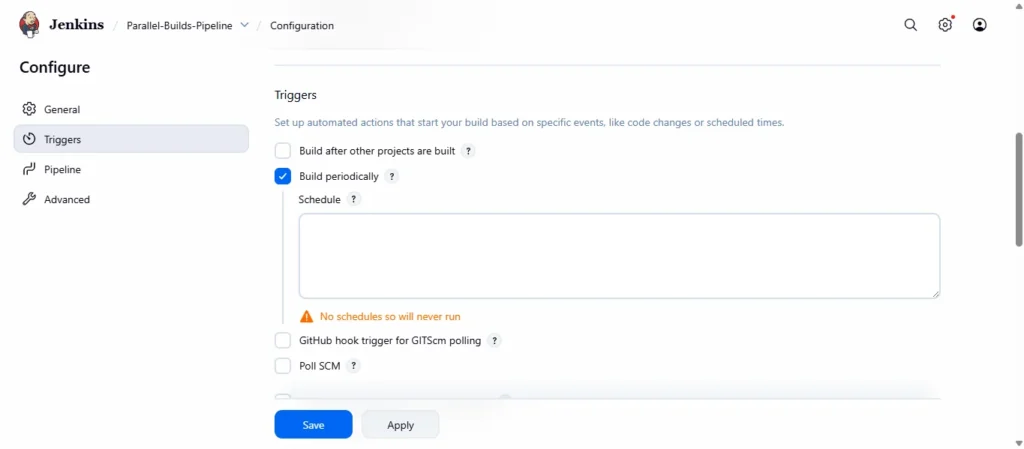 One of the most powerful and flexible features of Jenkins is its ability to schedule builds to run periodically without manual intervention. You can configure Jenkins to automatically trigger jobs at specific intervals — daily, weekly, or even every few minutes — based on your project’s needs.