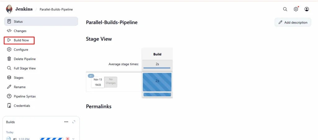 - In Jenkins Dashboard → open the pipeline you created