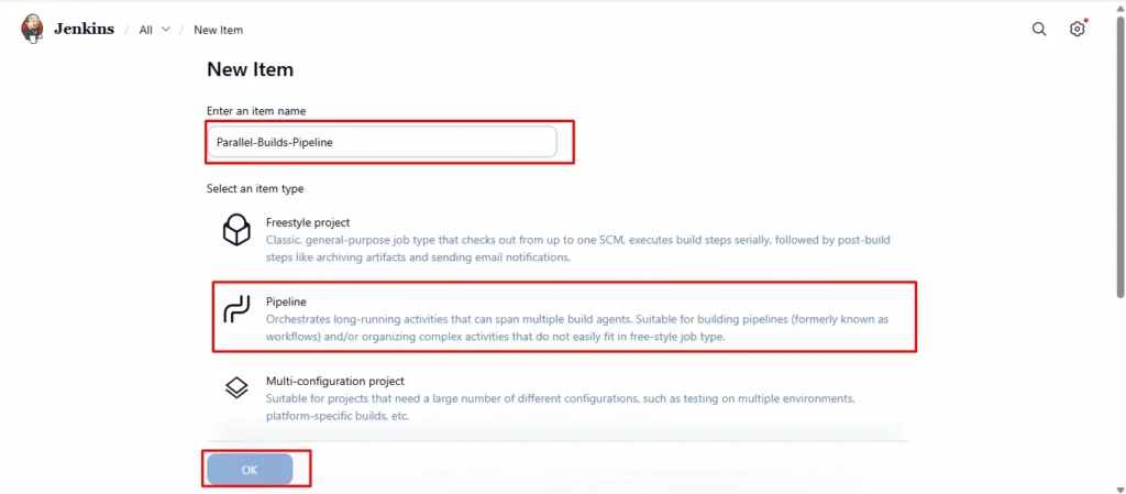 3.Name it something like Parallel-Builds-Pipeline