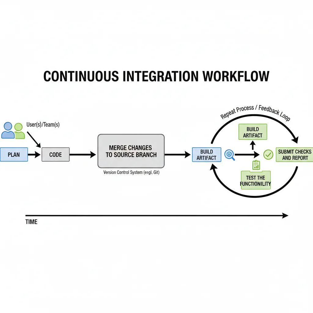 Continuous Integration (CI) is a process that helps developers automate and manage their software development workflow. It follows a few simple but important steps — planning, coding, making changes or merging code, checking results, and pushing updates.