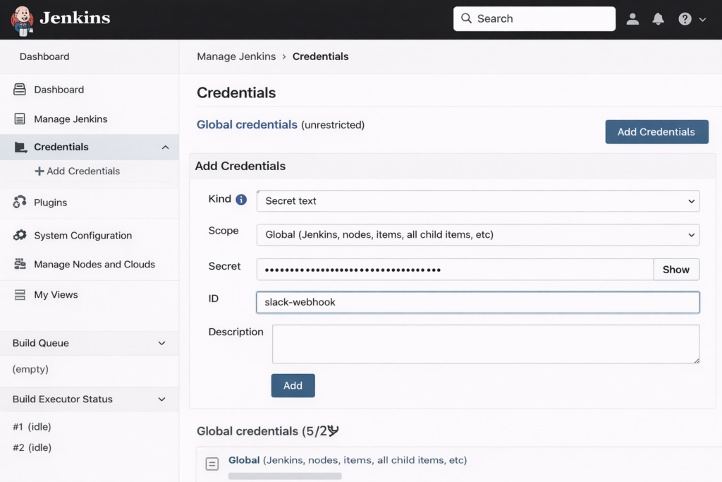 Step 1: Add Slack Webhook as Jenkins Credential