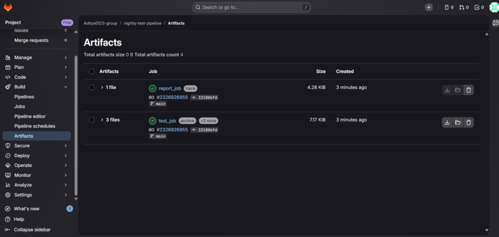 Automating test execution through a scheduled nightly pipeline in GitLab significantly improves reliability. Instead of depending on manual testing, your system now validates the application every day without intervention.