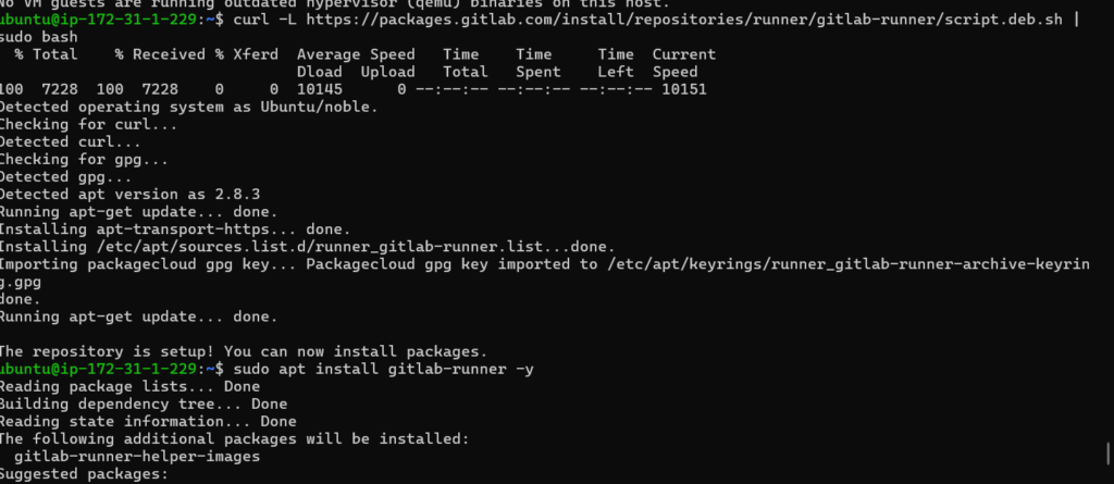 curl -L https://packages.gitlab.com/install/repositories/runner/gitlab-runner/script.deb.sh | sudo bash