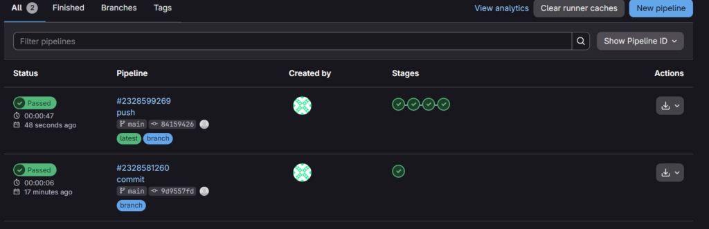 Because each job uses tags, GitLab routes it to the appropriate runner automatically.