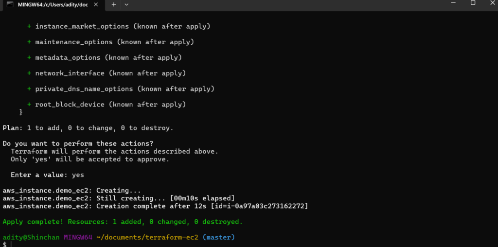 Terraform asks for confirmation before making changes (unless auto-approved).