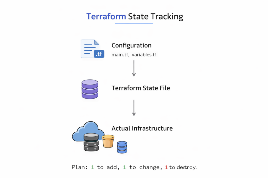 - terraform plan – Previews proposed changes to the infrastructure.