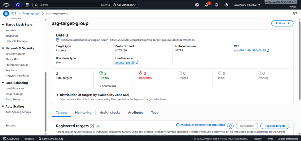 The Target Group connects the Load Balancer to EC2 instances and performs health checks.