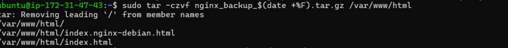 sudo tar -czvf nginx_backup.tar.gz /var/www/html